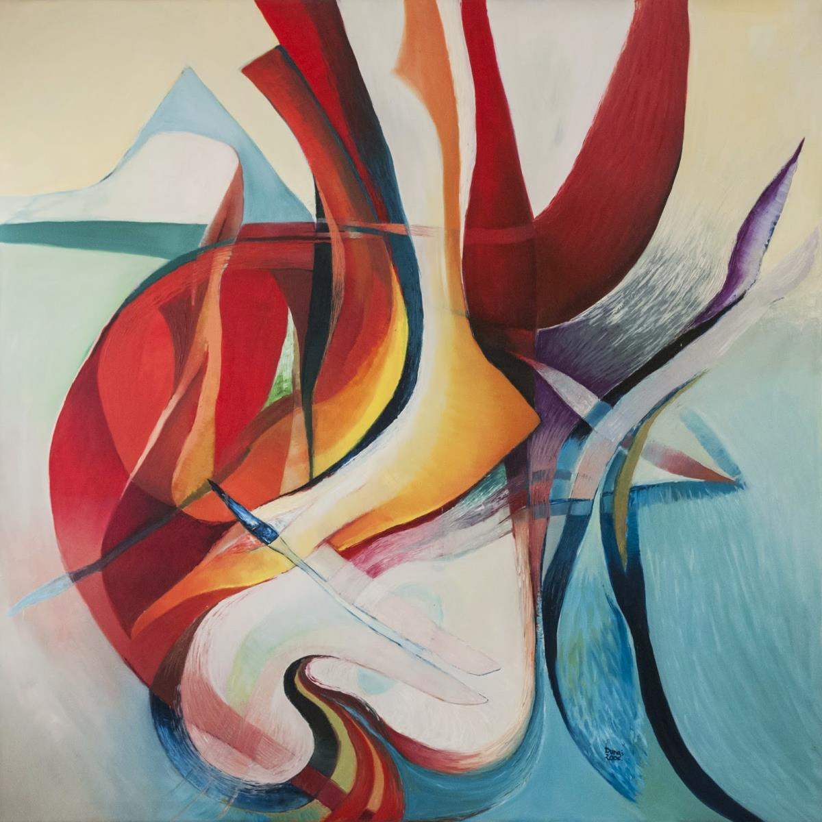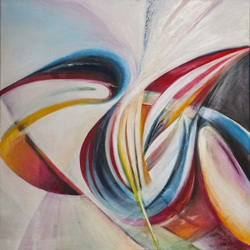 Mostani képeinek inspirációs alapja a belső. Amikor befelé figyelünk, megfelelési kényszer nem lehet bennünk. Tapasztalhatjuk, hogy egy élmény, gondolat, érzés felmerül, aztán átalakul, vagy jön a következő. Ezért nehéz ugyanabban az élményben hosszabban tartózkodni.