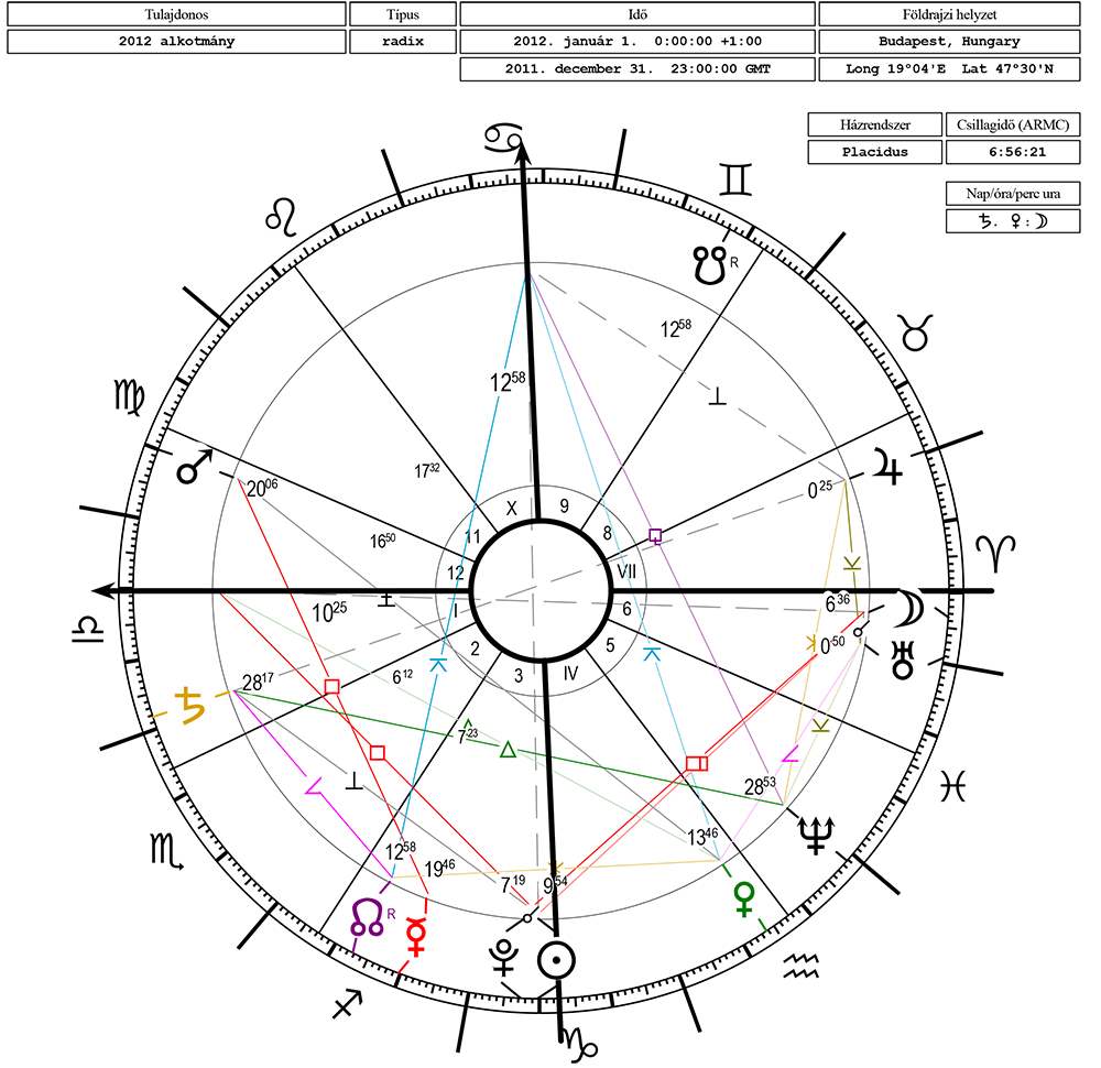 Keressük meg a képletben, hogy pontosan milyen karmát kell nekünk megoldani. Érdekes következtetésre lehet jutni, ha az új korszak első húsz évének horoszkópját ráhelyezzük az 2012-es alaptörvény képletére. Az alaptörvény képletében a XI. - V. házban halad az új korszak képletének ascendense, amelyet a szabadság tengelyének nevez az asztrológia. A magyaroknak szabadság értelmezésének területén kell majd változtatni a gondolkodásban, magatartásban, és a még meglévő dogmákkal kapcsolatban.